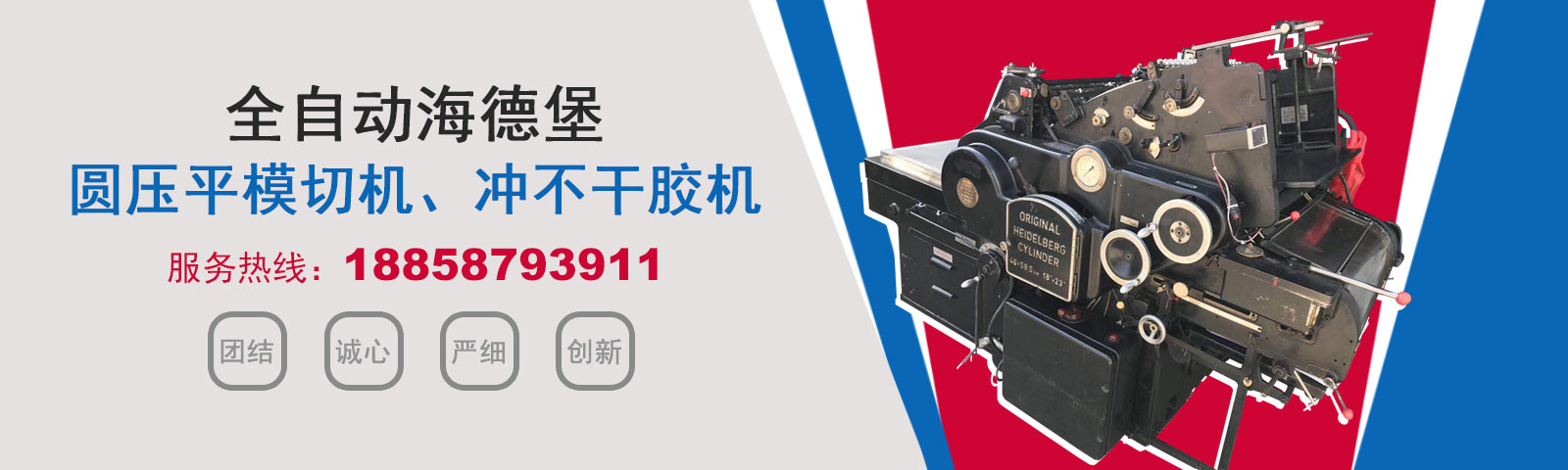 瑞安市恒柯機械廠(www.wzhkjx_com.vlbaszp.cn)是國內專業制造銷售全自動模切機,全自動燙金機,圓壓平模切機,圓壓平燙金機,滾筒燙金機,沖不干膠機,海德堡凸印機.銷售的產品系列規格齊全,產品具有速度快,壓力均勻,套印準確等特點。